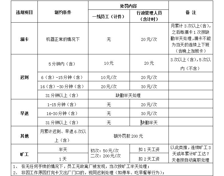 考勤處罰管理規(guī)定: